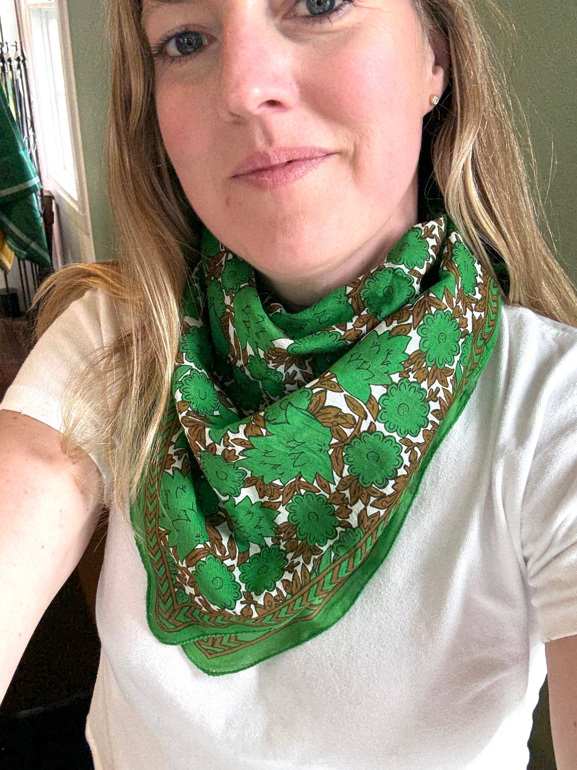 The Ajmer N°791 scarf showcases the lightness and softness of cotton in an elegant two-tone floral pattern. This bandana square can be tied around the neck or in the hair for a delicate and refined touch. The chevron border precisely defines the scarf's contour, while the "MOISMONT" print in one corner subtly adds a signature touch. A simple, elegant accessory that's easy to wear every day.