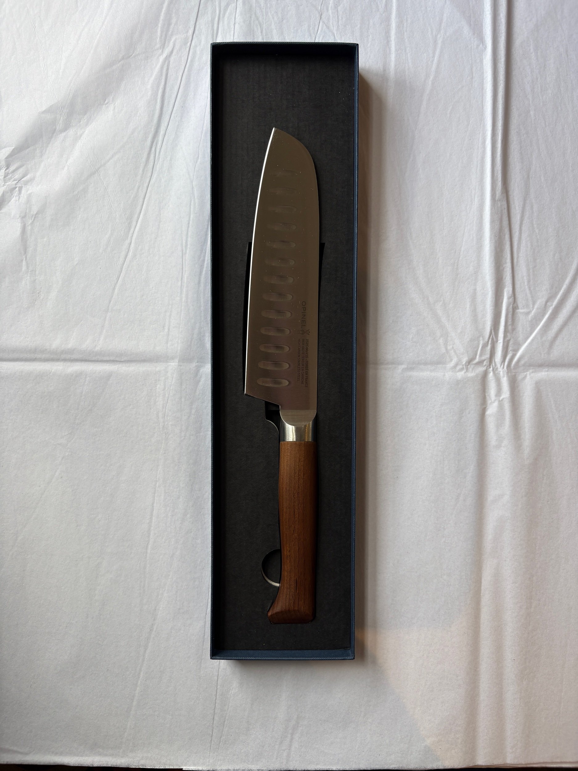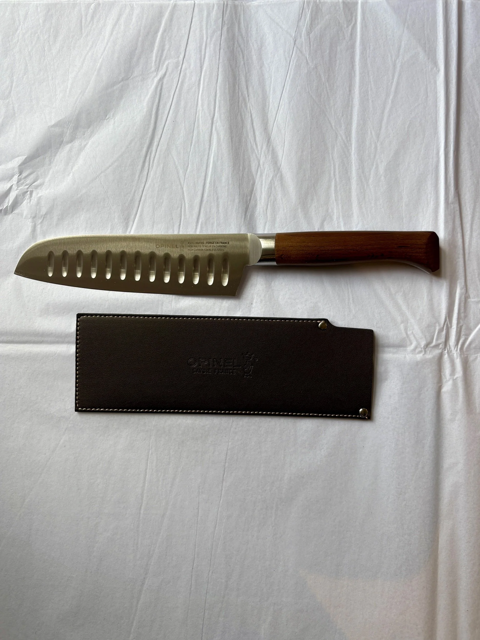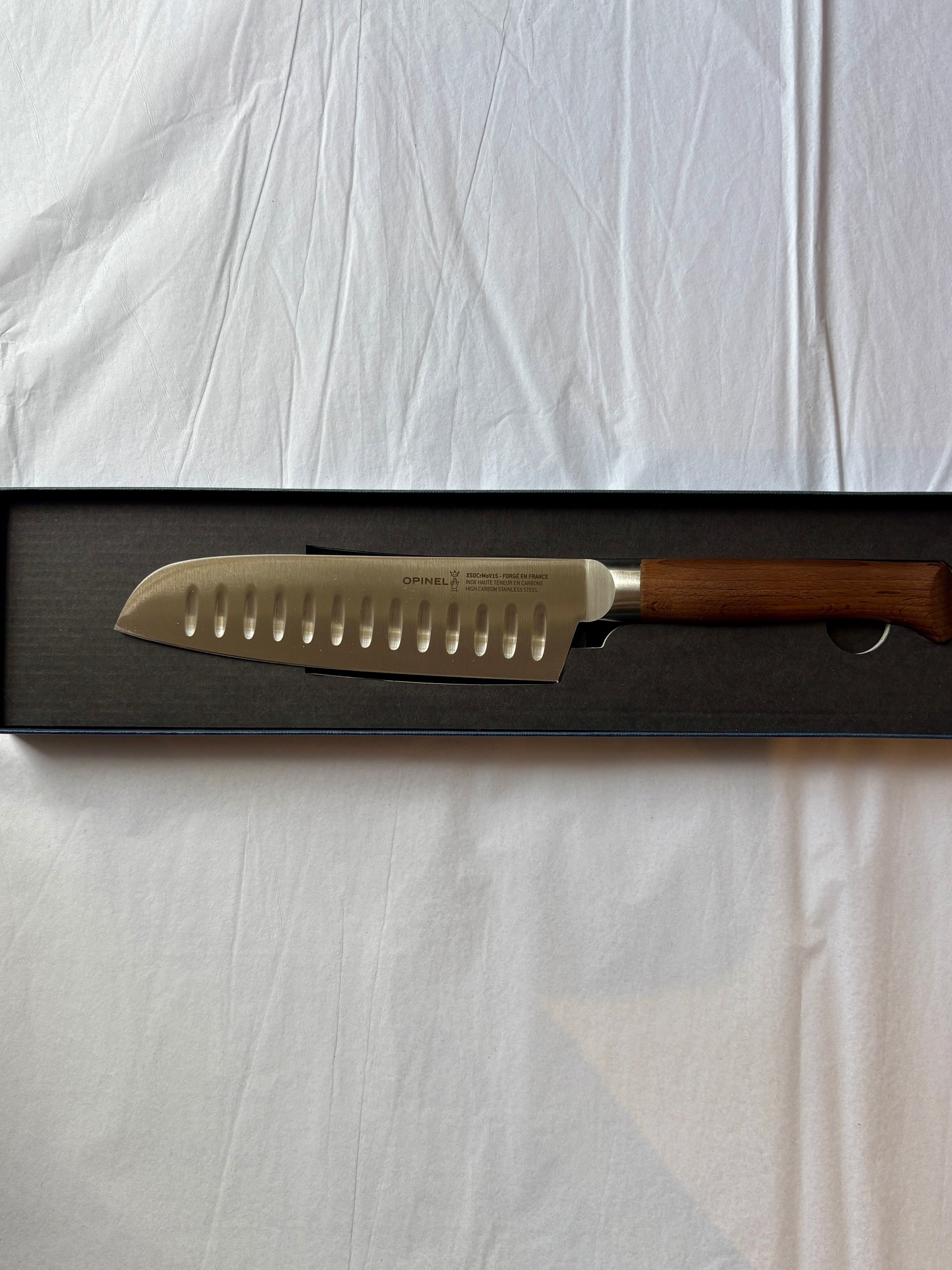 Steeped in tradition, the Opinel Forged 1890 7" Dimpled Santoku knife with will surely become your next favorite kitchen knife. 100% fully forged (the blade, bolster, and tang) from one steel rod (X50CrMoV15 steel), benefits from a continuous grain flow and superior quality due to hot forging (heated at over 1200 degrees Celsius).