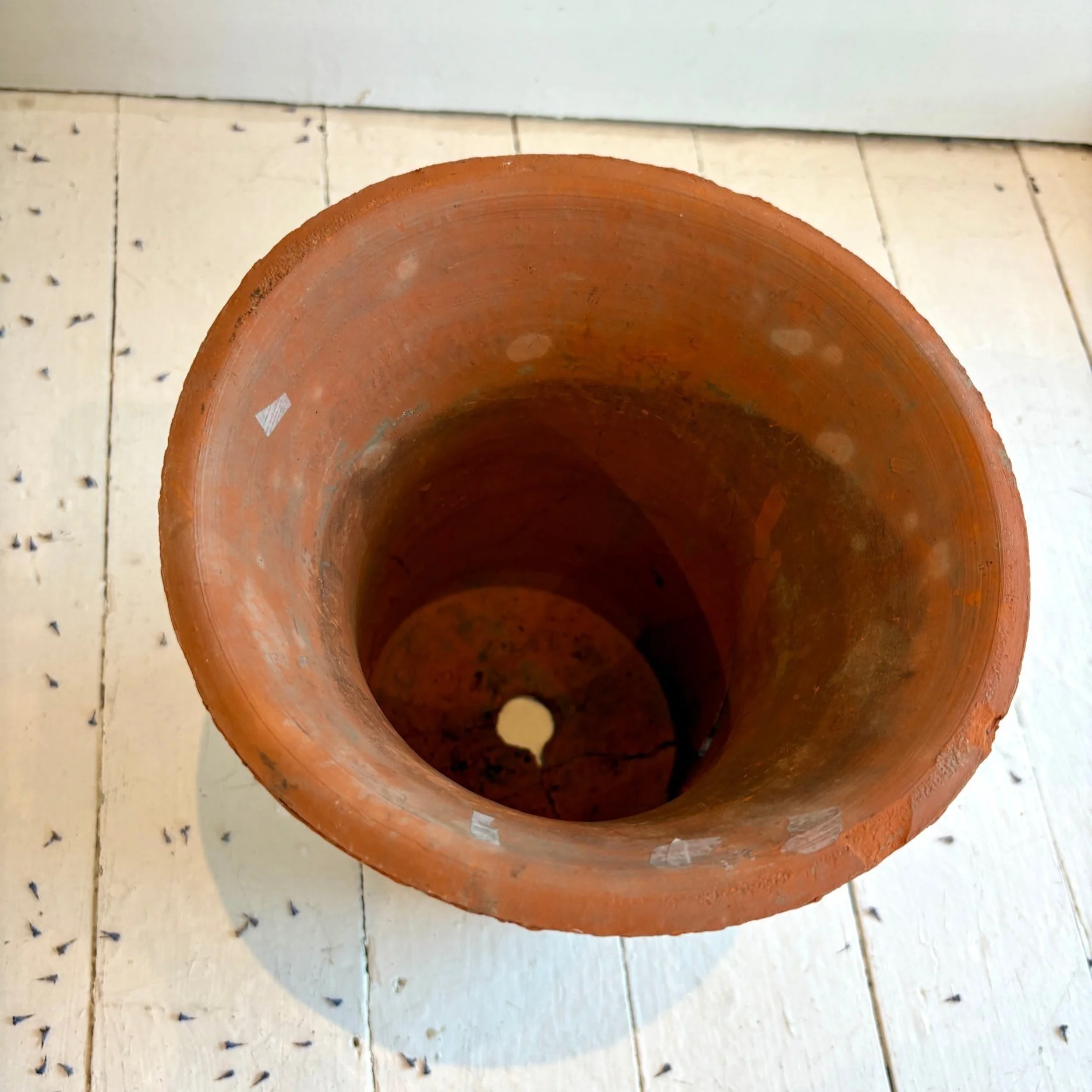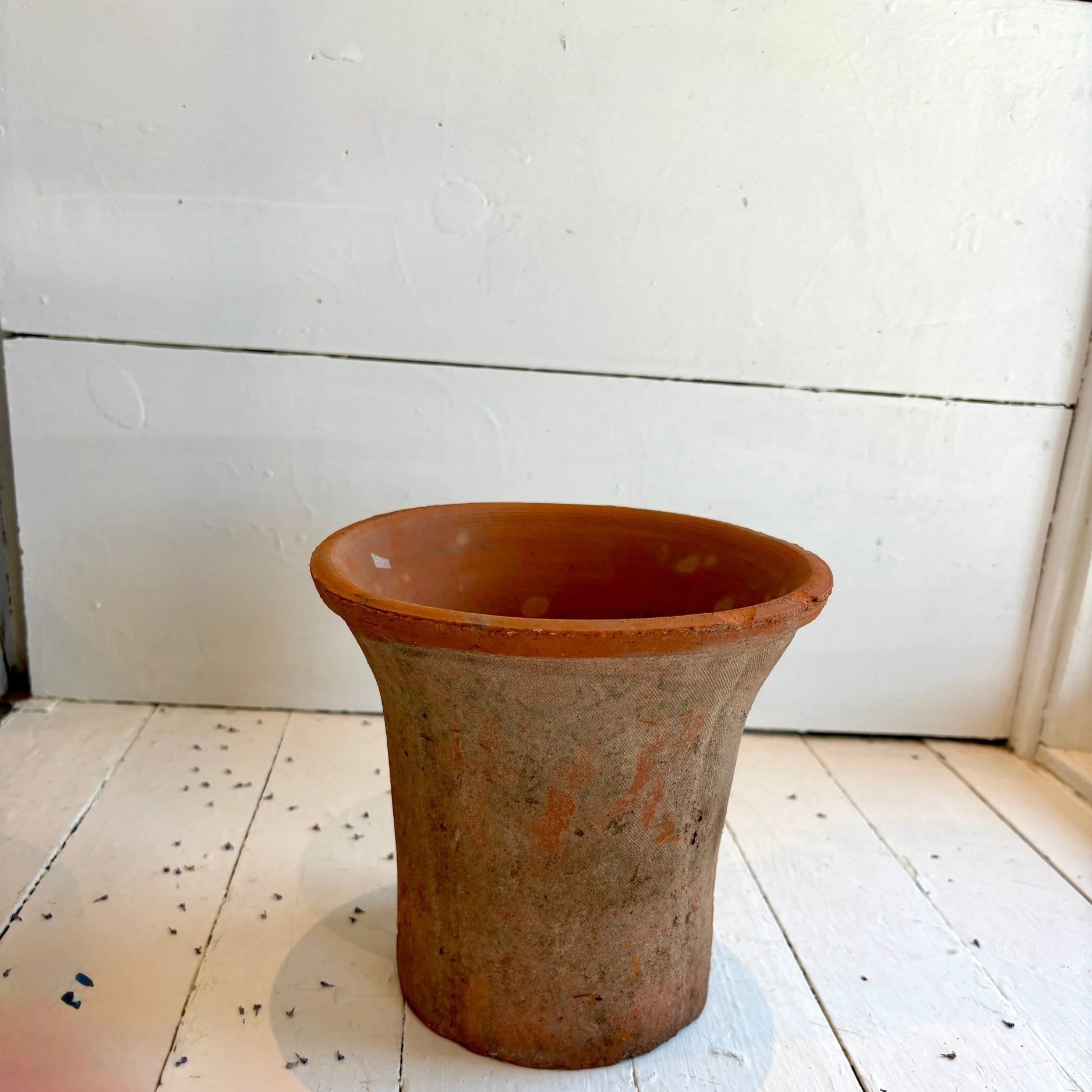 This vintage terra cotta pot has a fluted shape and is ever so elegant. The perfect size to fill with flowers and set on the table top. Its origins are unknown, but looks Italian or European.
