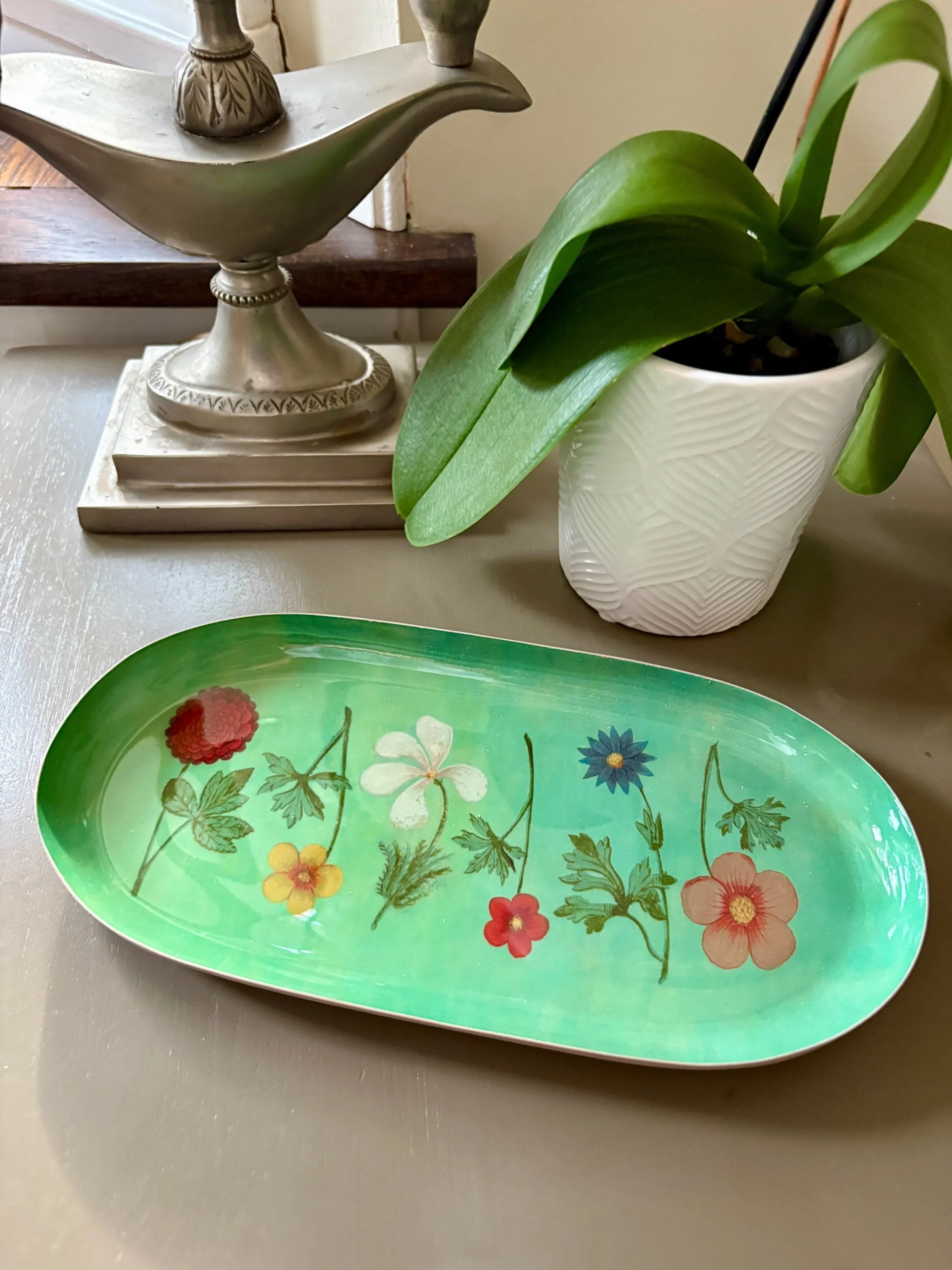 This decorative Festival of Flowers Enamel Tray will bring instant personality into your home. The delightful oval shaped tray features remarkable watercolour illustrations of flowers, hand-painted by an unknown artist in the early 1600s, onto the pages of a 1596 book dedicated to the Christening of Lady Elisabeth of Hesse.