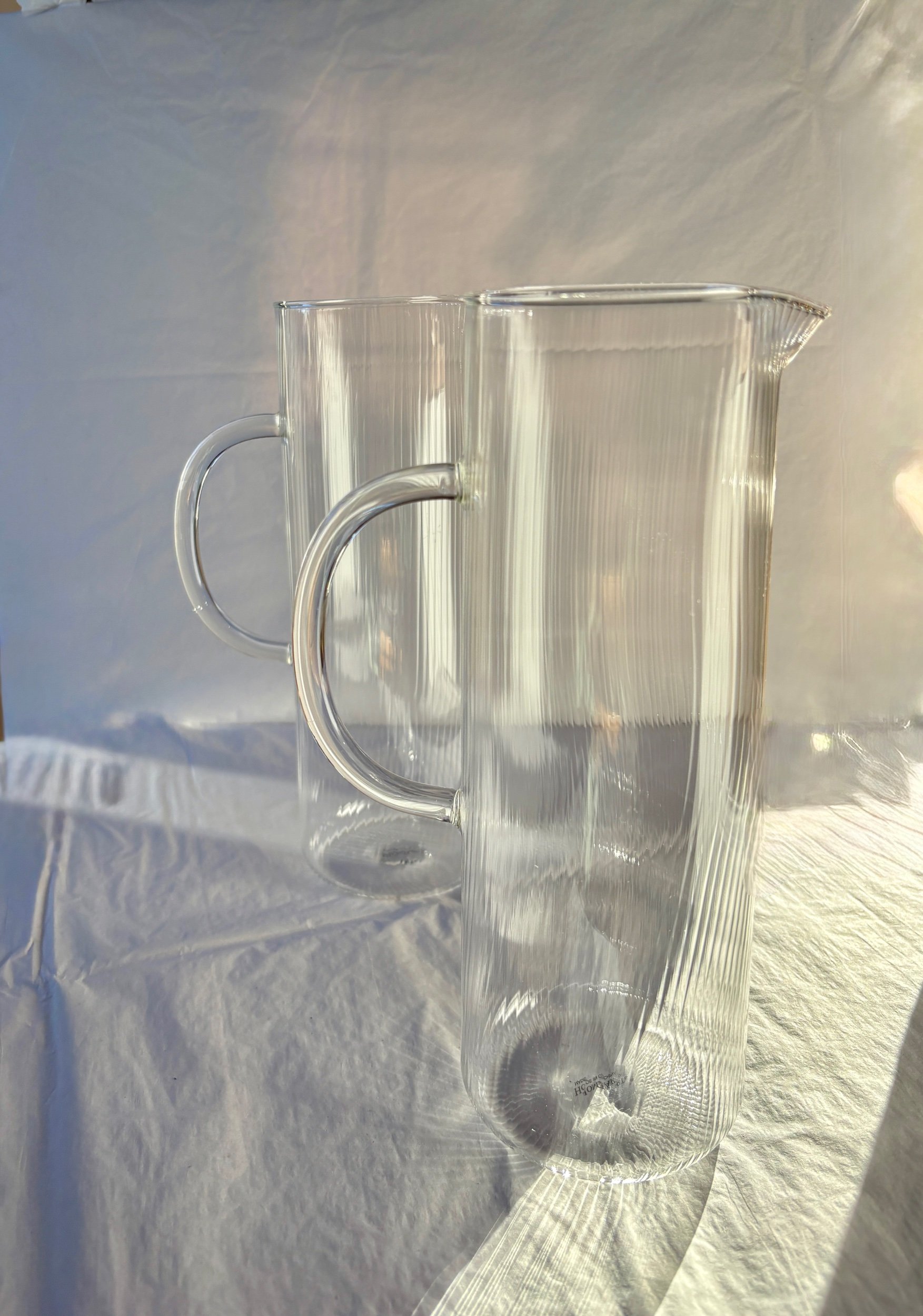 This Ribbed Glass Pitcher is made from thin but strong and crystal clear borosilicate glass. The simple profile can go from casual to fancy, dressed up or dressed down. Perfect addition to any tablescape.