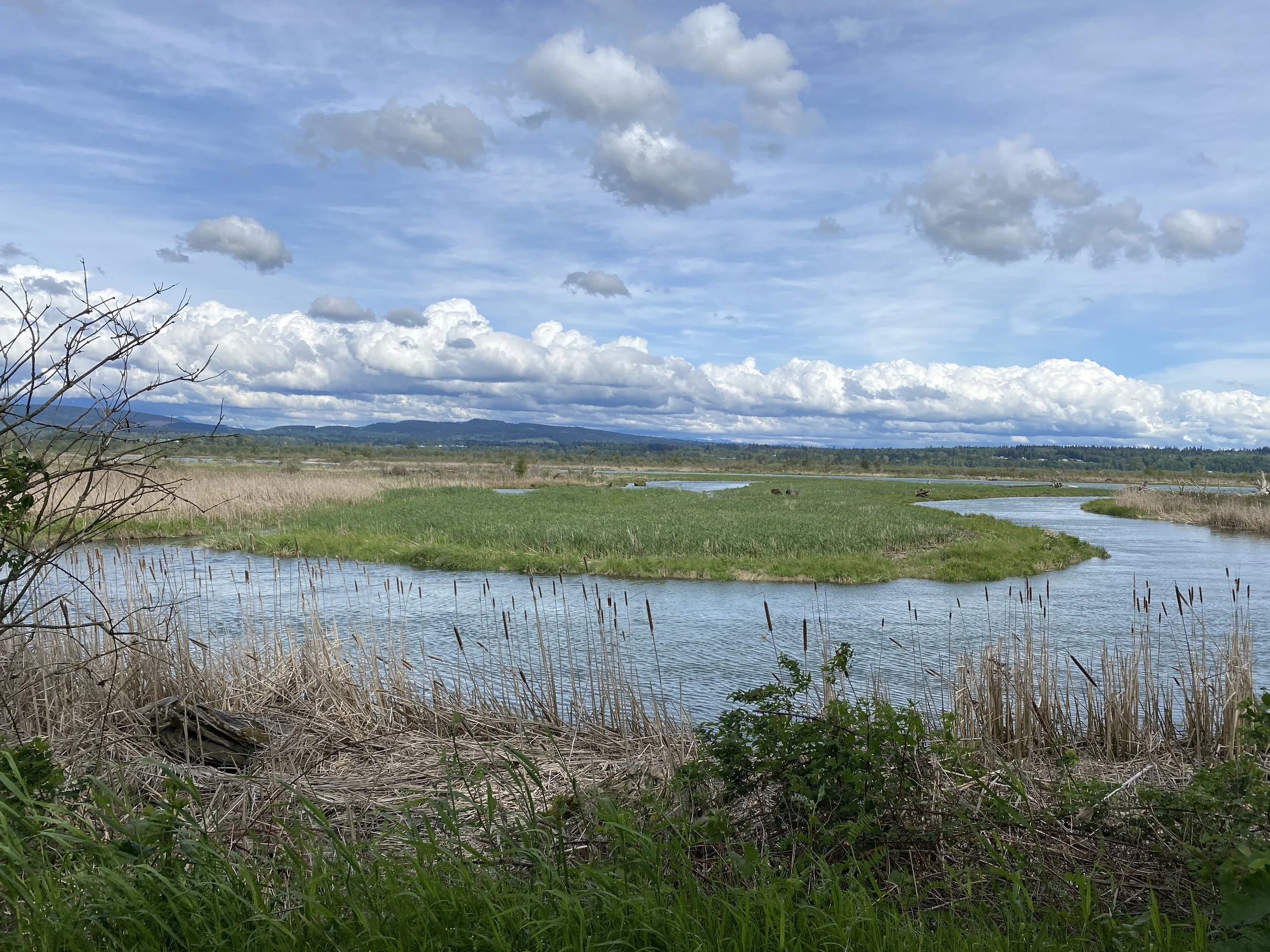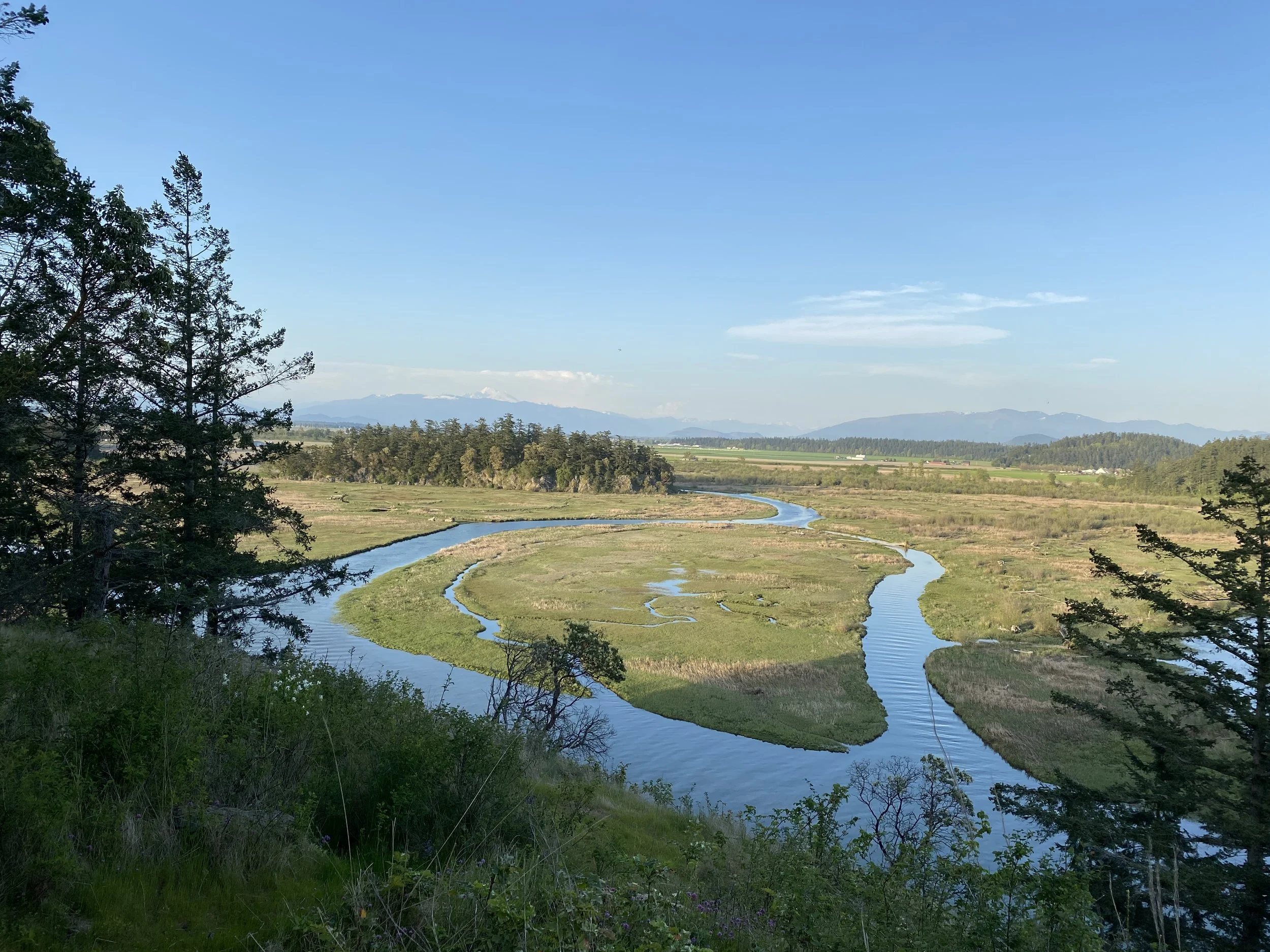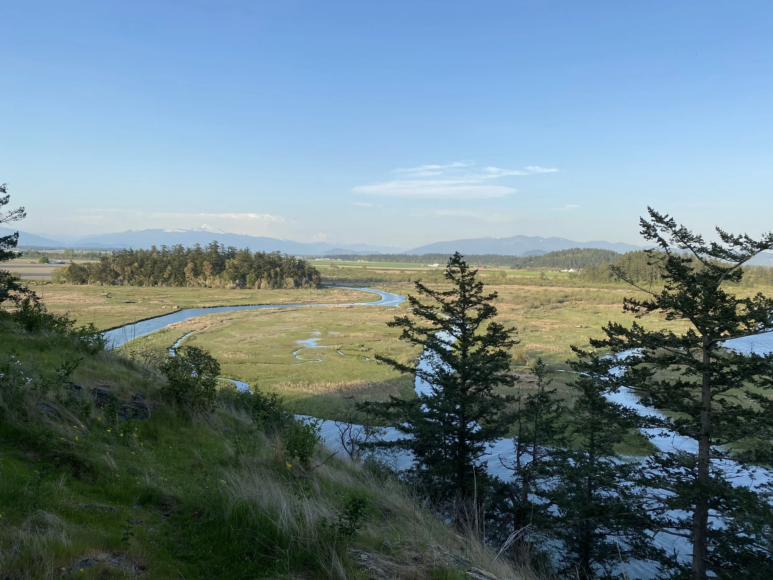 The left prong will lead you through the woods a bit more, then up a steep but very short hillside to one of the most beautiful views over the North Fork of the Skagit Estuary. Take a picnic and enjoy.