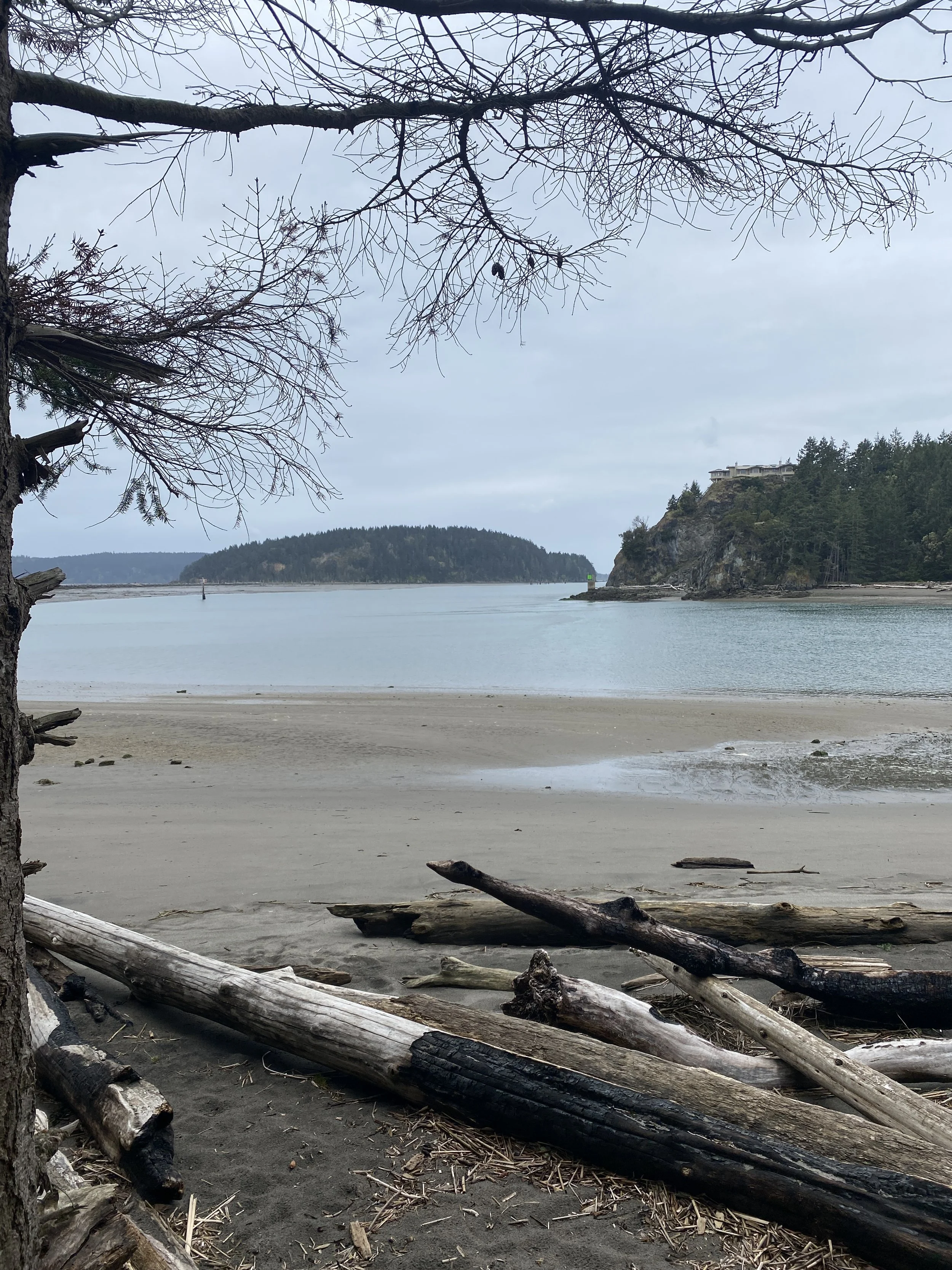 The right prong leads you to what the locals call “Hole-in-the-Wall.” It is where the La Conner Channel enters Skagit Bay. Here, the trail leads you down to a special little beach that is sandy, with lots of driftwood and great views out into Skagit Bay. It’s also a wonderful spot for an afternoon picnic.